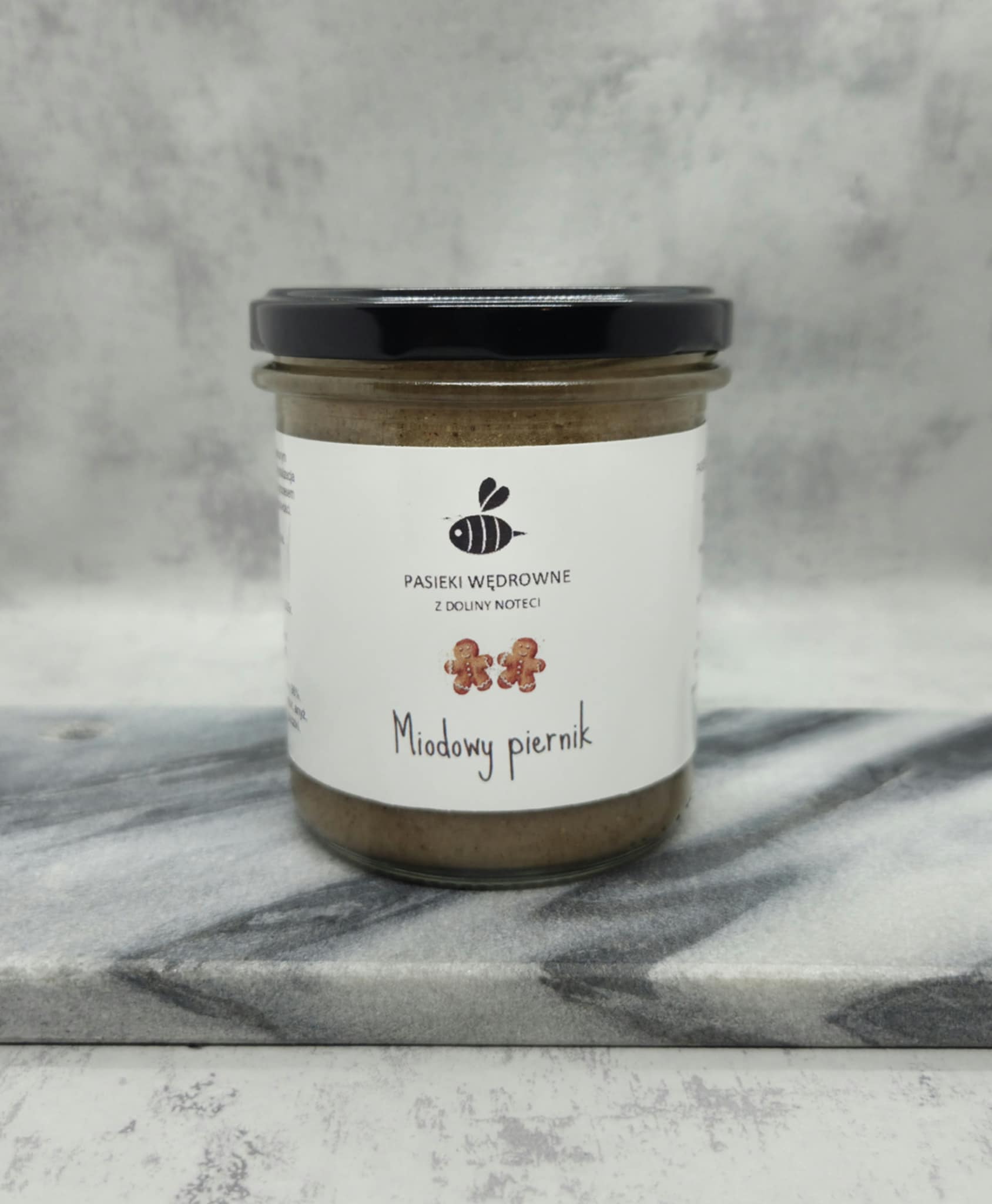 Skład: 98% miód wielokwiatowy, 2% przyprawa korzenna (cynamon, imbir, anyż, gałka muszkatołowa,