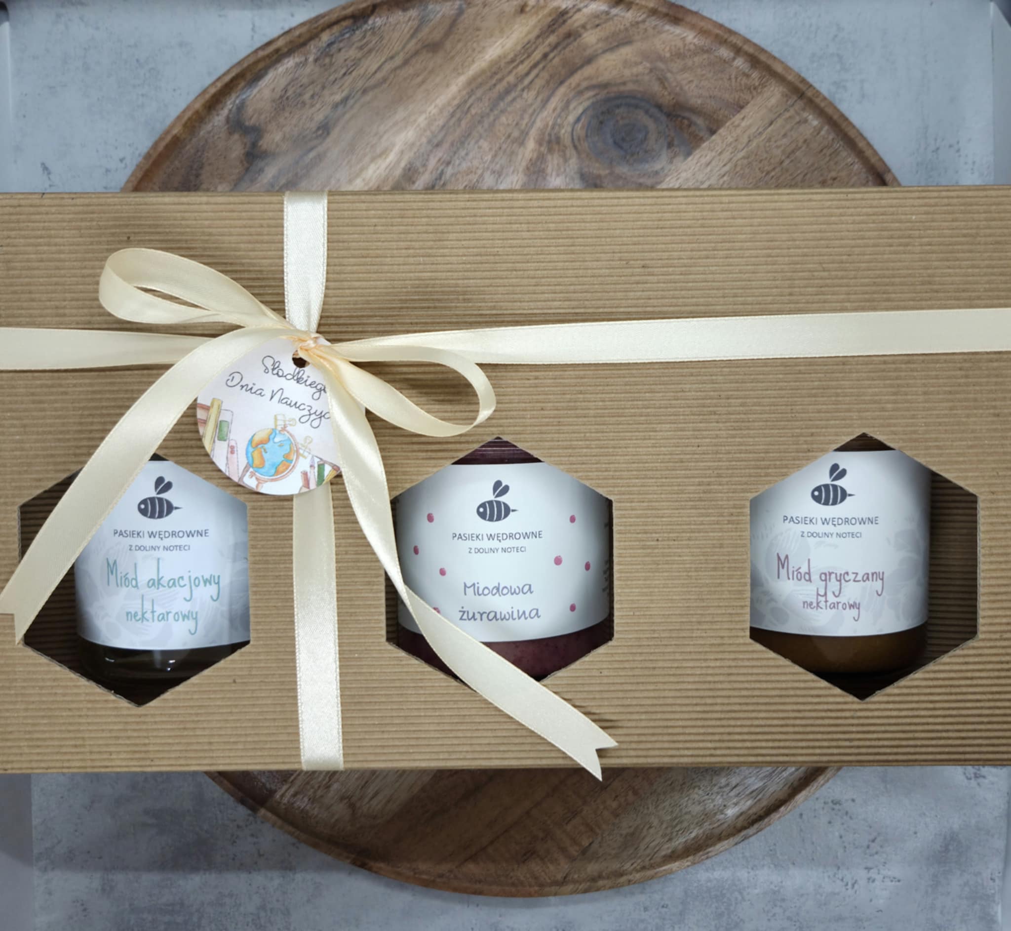 - 3 słoiki miodu,