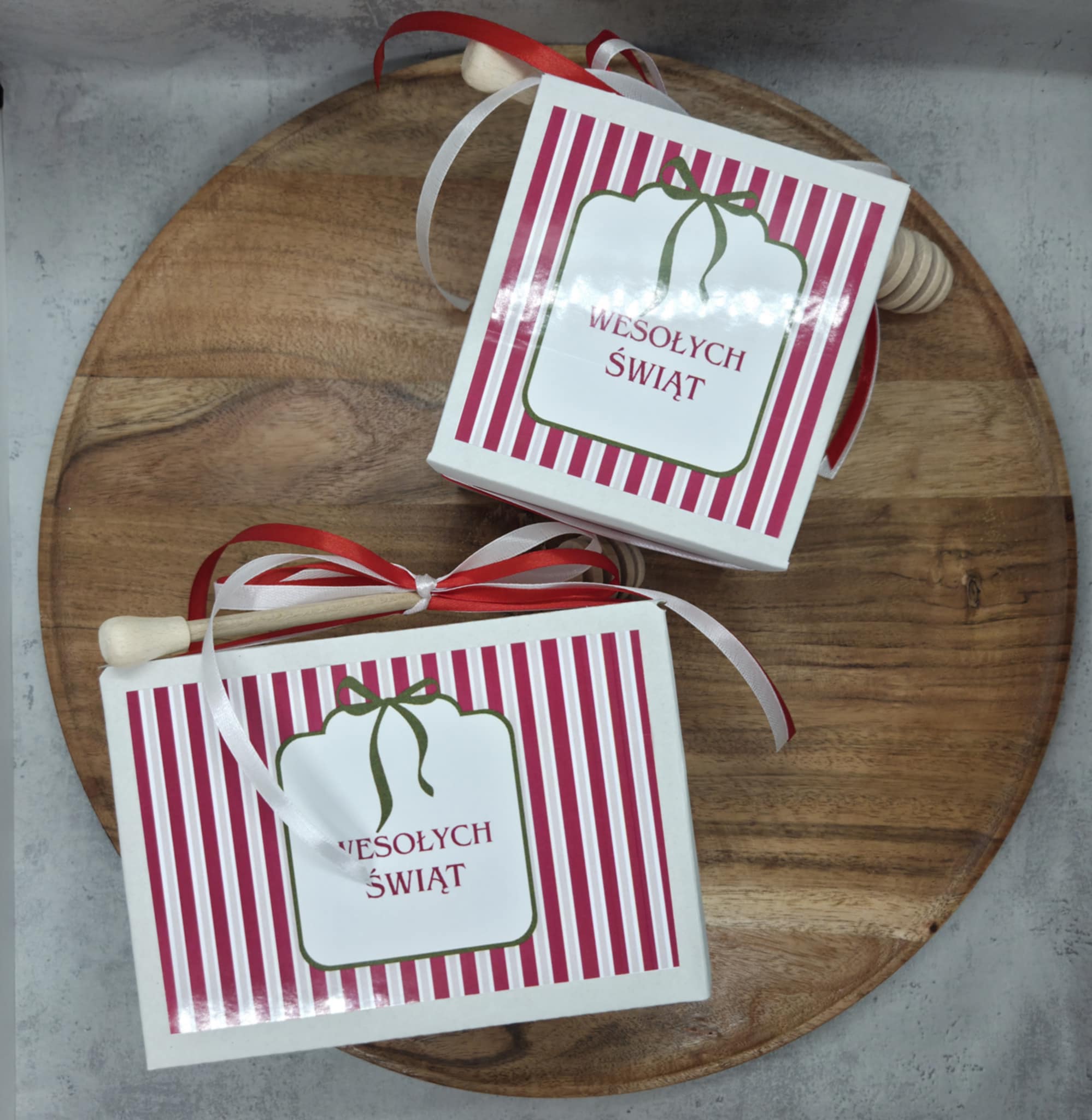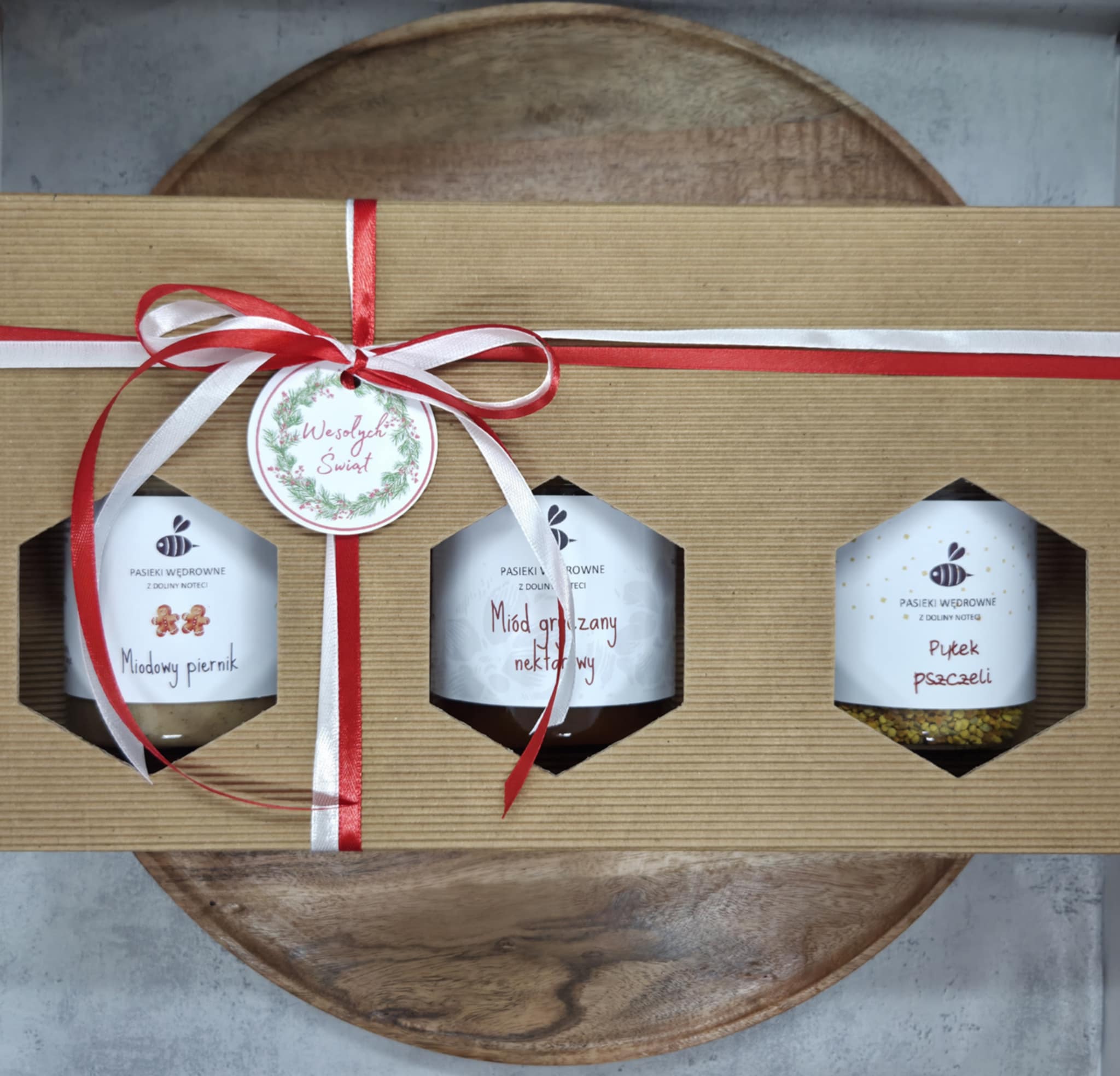 Zestaw prezentowy na Święta Bożego Narodzenia z 3 małymi produktami.